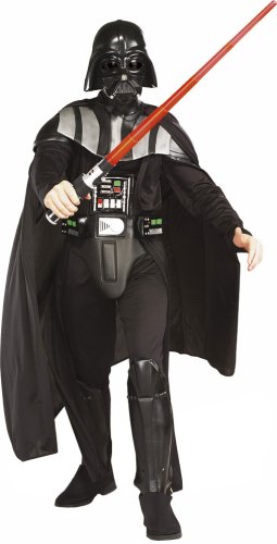 Star Wars Costumes - Scary Adult Halloween Costumes - The Deluxe Darth Vader costume includes the injection molded Darth Vader helmet (1/2 mask), flowing cape, belt and Darth Vader costume jumpsuit with molded EVA collar, boot tops and chest piece.
